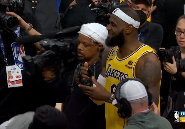 詹姆斯破纪录后湖人失误不断,老詹末节仅仅拿到2分,比赛还剩37.7秒湖人仅落后6分,詹姆斯提前放弃比赛,坐在替补席并且解开鞋带,最终湖人输掉比赛,赛后詹姆斯满脸笑容,接受采访时,詹姆斯表示:我知道我还能打好几年,即使在这个年龄,我也能帮任何一支球队赢得多个总冠军。