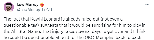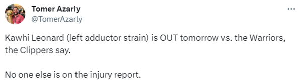 小卡因伤缺战勇士:左内收肌拉伤被迫休战 快船巨星或缺席全明星赛