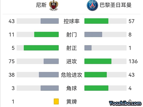 全场比赛结束,尼斯1-0巴黎圣日耳曼。