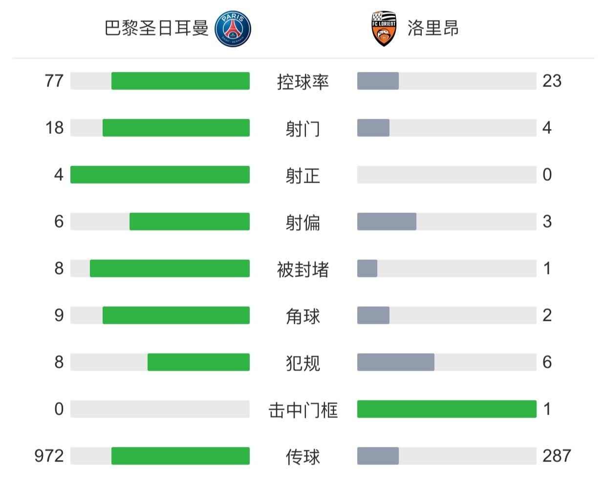 巴黎0-0洛里昂 姆巴佩看台观战攻击群哑火