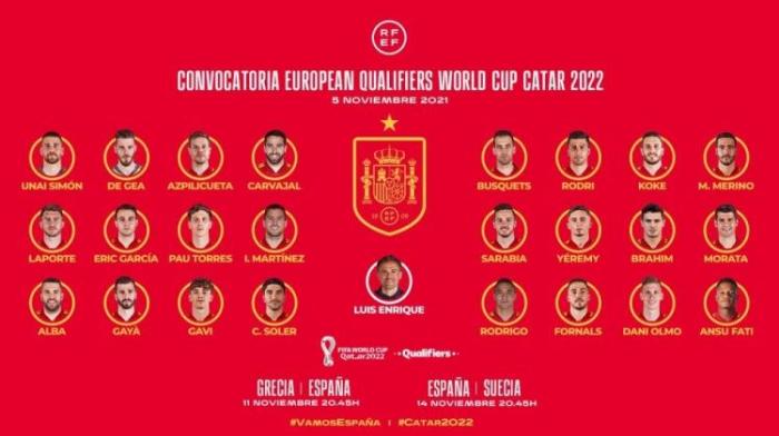 来源:JRS直播11-06 12:08925直播11月06日讯 为征战世预赛,今日,西班牙公布新一期大名单:卡瓦哈尔回归,加维、皮诺、迪亚斯入选。