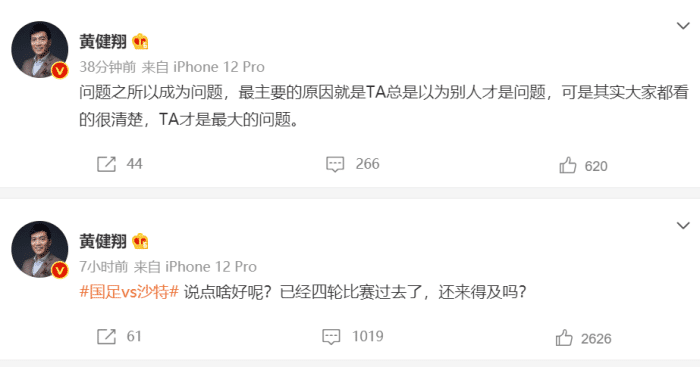 在这个情况下黄健翔发问疑似质问他,黄健翔说的比较隐患,但翻看他晚上的一系列发文就知道他说的是李铁。认为四轮比赛过去了,李铁仍没发现自己的问题所在,固执已见根本不管外界的评论。这一定程度上毁了国足,备战没有针对性,排兵布阵问题重重,如果仍想保留冲击世界杯的希望他该醒醒了!