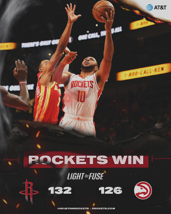 925直播12月14日讯 NBA常规赛老鹰主场对阵火箭,火箭近来遭遇2连败。开场后戈登状态神勇帮助火箭一度略微领先,但此后老鹰外线开张连连三分命中反超比分并确立10分优势。第二节老鹰攻势仍旧凶猛,火箭虽然反击打得不错但防守端无法限制老鹰拿分,上半场老鹰69-58领先。下半场特雷-杨手感依旧接连投篮命中,但火箭依旧紧追不舍,第四节火箭更是连续下起三分雨完成反超老鹰未能延续攻势,最终火箭132-126逆转老鹰结束2连败。