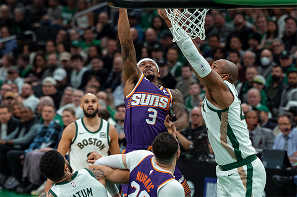 这场比赛开始的时候,还有一个小花絮,跳球时刻,TD花园灯光熄灭三秒钟。首节比赛太阳落后3分,杜兰特打满第一节的情况下,拿到15分。但到了第二节,他3次出手0分,凯尔特人的杰伦布朗第二节单节轰下15分,塔图姆半场砍下23分。凯尔特人半场领先5分。第三节结束的时候,凯尔特人三分球爆发,将优势拉大到17分。末节绿衫军顶住压力,成功拿下胜利。