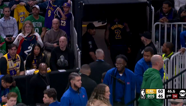上半场最后时刻,范德比尔特抢断塔图姆后遭遇伤病,无接触且无碰撞受伤,表情痛苦,直接下场坐回替补席,湖人队医为他紧急检查后,范德比尔特一瘸一拐,直接返回更衣室。