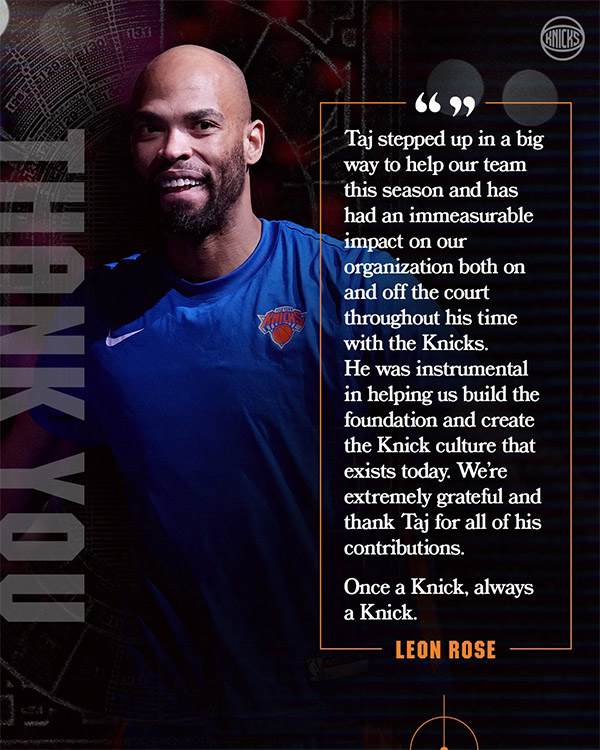 尼克斯官方宣布,球队已裁掉老将泰-吉布森;去年夏天吉布森签下一年底薪合同重返尼克斯,他的合同将在今日转为全额保障;裁掉吉布森后,尼克斯的阵容名单腾出一个空位,这让他们在截止日期前得到了更多操作上的灵活性,可做二换一或者三换二的交易。