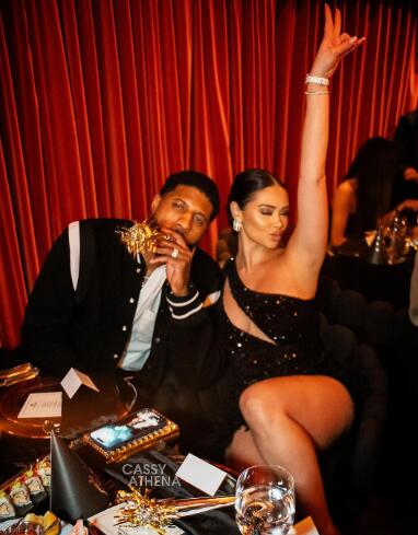 乔治与爱妻亲密合影以及碰杯喝酒,乔治还抽雪茄尽享派对;小卡、乔治等球员私下聚餐迎接新年,他们一起玩得十分开心。
