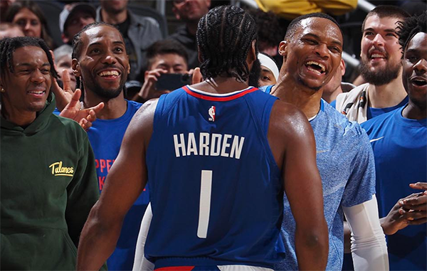 哈登加盟快船组成超级四巨头后,小卡、乔治、哈登和威少同时首发的效果很糟糕,最直接的结果就是快船惨遭6连败,之后威少降为替补,哈登搭配卡乔首发,而且威少的上场时间骤减。