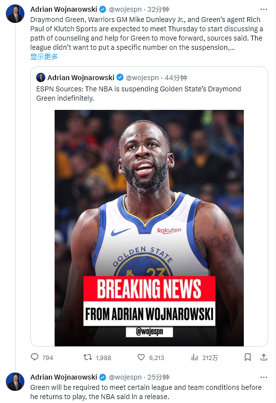 NBA官方声明:考虑到追梦过往屡次违法体育道德的行为,将会对他进行无限期禁赛,追梦的禁赛会立即执行,他需要满足联盟和球队的特定标准之后才能返回球场。