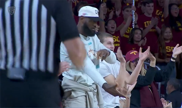 下半场布朗尼终于得分——在快攻反击中,布朗尼接球命中追身三分,如此一球点燃球馆,詹姆斯站起来为儿子疯狂庆祝,布朗尼终于打进大学生涯首球;打了3分钟后下场休息。