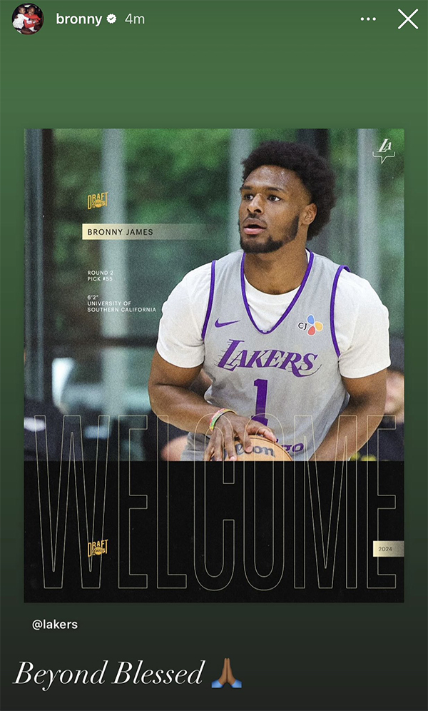 2024年NBA选秀:湖人选中布朗尼 众星祝贺