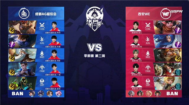 925直播 3月18日2021KPL春季赛季前赛第二周第一日比赛,由成都AG超玩会对阵西安WE,以下是本场比赛快讯。
