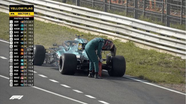 一练剩余43分钟,维特尔疑似引擎故障,赛车尾部冒烟,并出现漏油的迹象。维特尔将赛车停至维修区出口附近,赛会出示红旗,一练暂停。