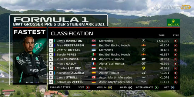 925直播讯 北京时间6月26日晚,2021F1施蒂利亚大奖赛第三次自由练习赛在红牛环赛道结束。经过一个小时的比拼,梅奔车手汉密尔顿以1分04秒369排名第一,维斯塔潘落后0.204秒排名第二,博塔斯第三,佩雷兹排名第四,梅赛德斯和红牛车队包揽前四名。P5-P10分别为:角田裕毅、加斯利、勒克莱尔、阿隆索、斯特罗尔和维特尔。排位赛将在北京时间今晚21:00开始。