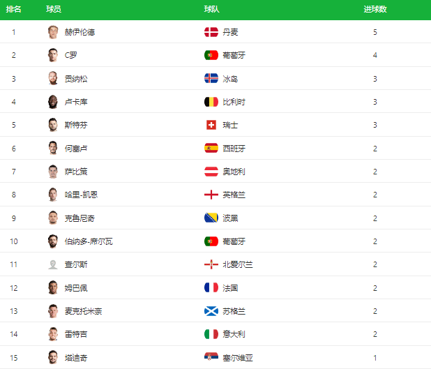 来源:JRS直播03-27 15:19925直播讯03月27日欧洲杯预选赛拉开大幕,射手们纷纷亮剑,葡萄牙队长、38岁的C罗在两场比赛中打进4球,表现强势。丹麦锋霸赫伊伦德狂轰5球,大杀四方。姆巴佩、凯恩、卢卡库等人也有不俗发挥,接下来我们一起来看看欧预赛最新射手榜:
