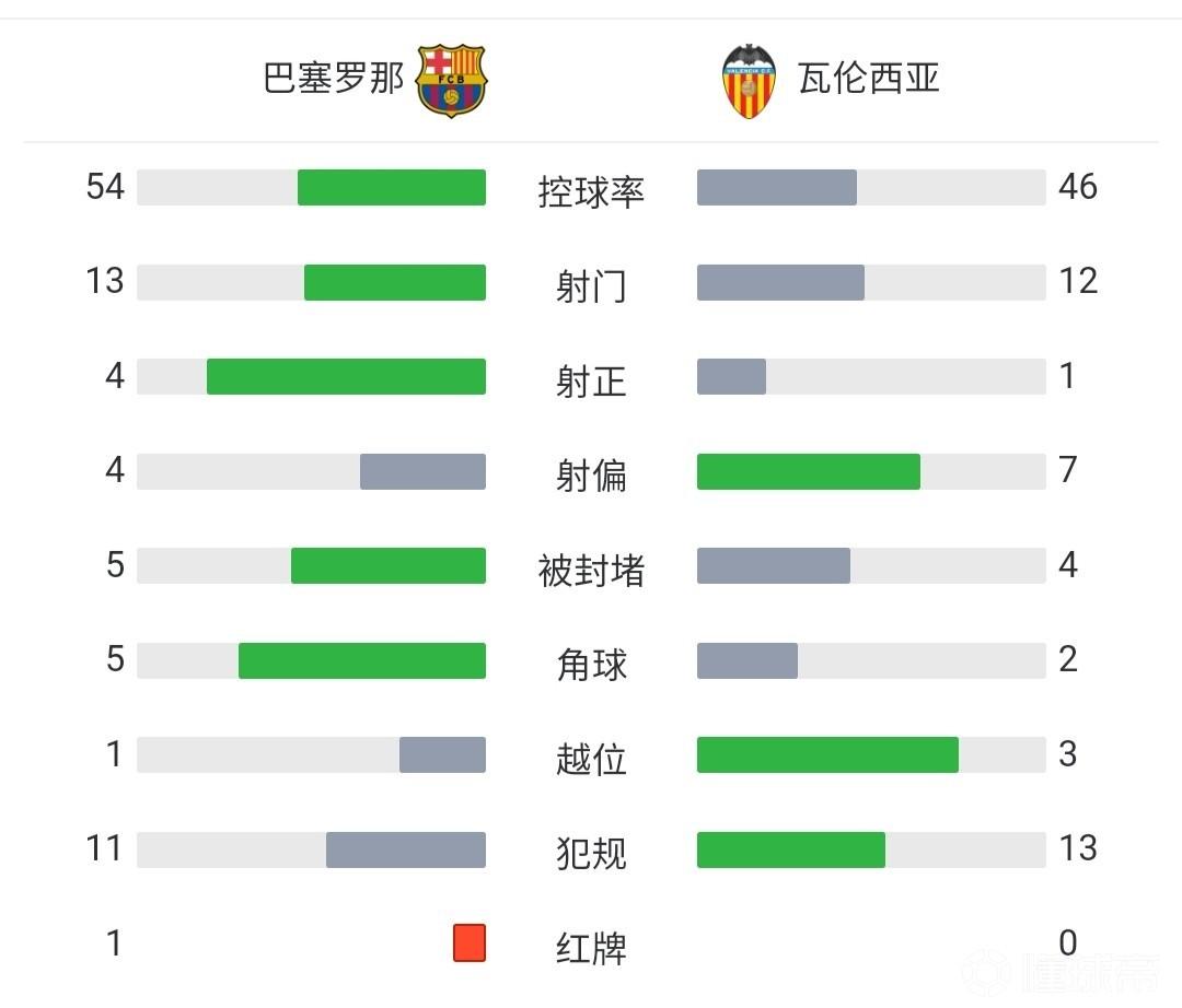 巴萨1-0瓦伦西亚 拉菲尼亚建功费兰失点阿劳霍染红
