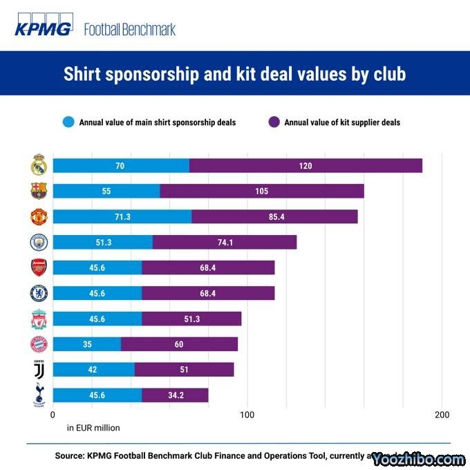 足坛年度球衣赞助+销售排行榜:西甲双雄霸占榜首 尤文仅第九