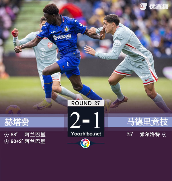 来源:JRS直播03-09 23:12 925直播讯 北京时间3月9日,西甲联赛第27轮,赫塔费主场迎战马德里竞技。比赛中,阿尔德雷特手球送点,瑟洛特点射率先得分,比赛末段,科雷亚因蹬踏动作被罚下,随后阿兰巴里扳平比分,4分钟后,阿兰巴里再下一城。最终,赫塔费2-1逆转马德里竞技,赢得了这场关键比赛的胜利。