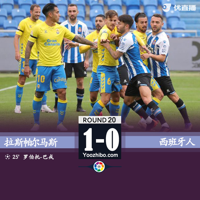 925直播1月3日讯 北京时间1月3日23:00,西乙第20轮,西班牙人客战拉斯帕尔马斯。上半时罗伯托-巴戎为拉斯帕尔马斯先拔头筹。下半时尤易斯-洛佩斯直红罚下,西班牙人10v11,尼科-梅拉梅德破门因德托马斯越位进球无效,81分钟武磊登场。最终,西班牙人0-1拉斯帕尔马斯。