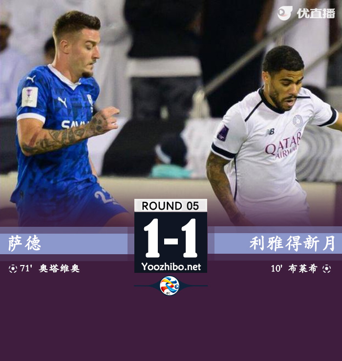 利雅得新月1-1萨德 布莱希破门阿菲夫助攻奥塔维奥扳平