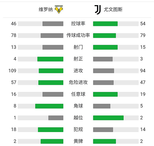 全场比赛结束,尤文图斯做客1-1战平维罗纳。