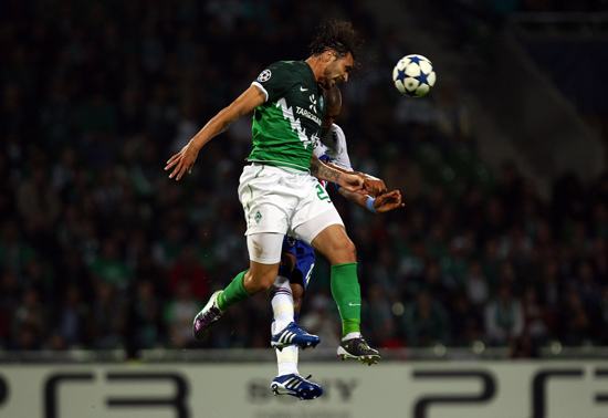 如果要向左边头球,身体先往右,然后用左前额向左边压球