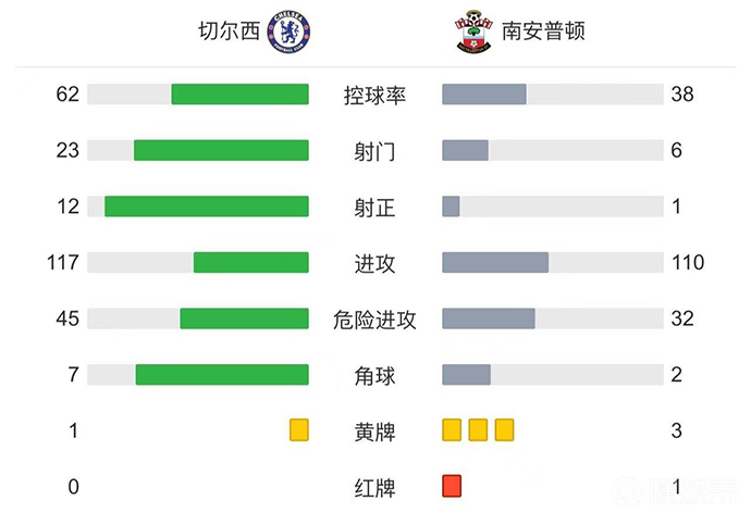 来源:JRS直播10-03 01:14 925直播讯:北京时间10月2日22:00,英超第7轮,切尔西坐镇主场迎战南安普顿。上半场,小查洛巴头球破门首开记录,麦卡锡多次作出扑救,卢卡库进球被吹,维尔纳头球破门被吹。下半场,沃德-普劳斯点射破门后染红离场,维尔纳破门再次领先,奇尔韦尔破门扩大比分,全场比赛结束。切尔西3-1南安普顿。