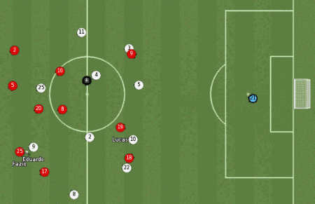 2、防守方在对目标球员企图使用造越位战术时,被目标球员和传球球员察觉,目标球员迅速推后回到不越位的位置上,传球球员才马上向目标球员传球。