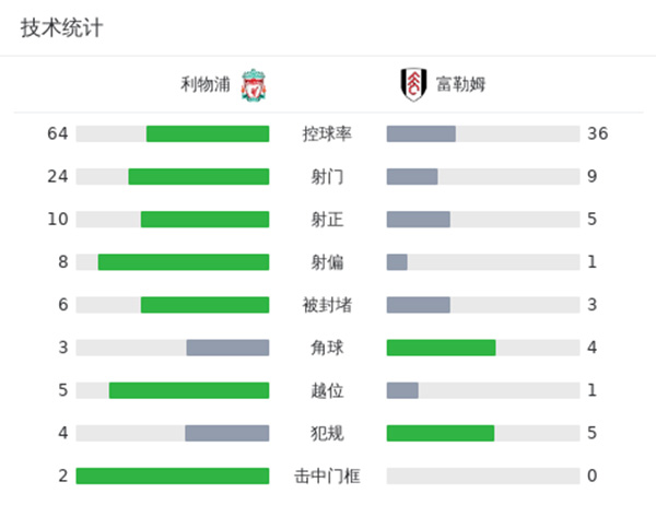 第20分钟,利物浦前场任意球机会,阿诺德选择直接攻门,这球造成莱诺乌龙球,利物浦1-0富勒姆。