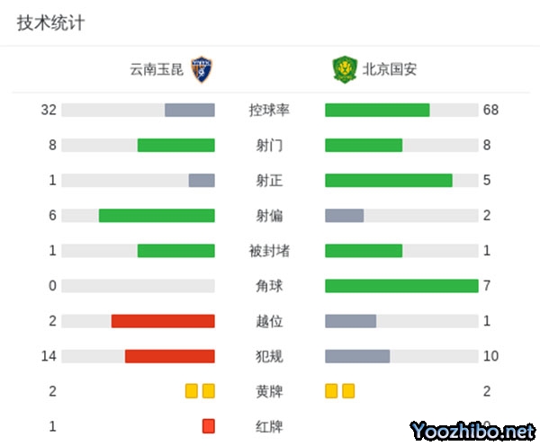 国安2-0玉昆开门红 法比奥破门赵宇豪柏杨补时双双被罚下